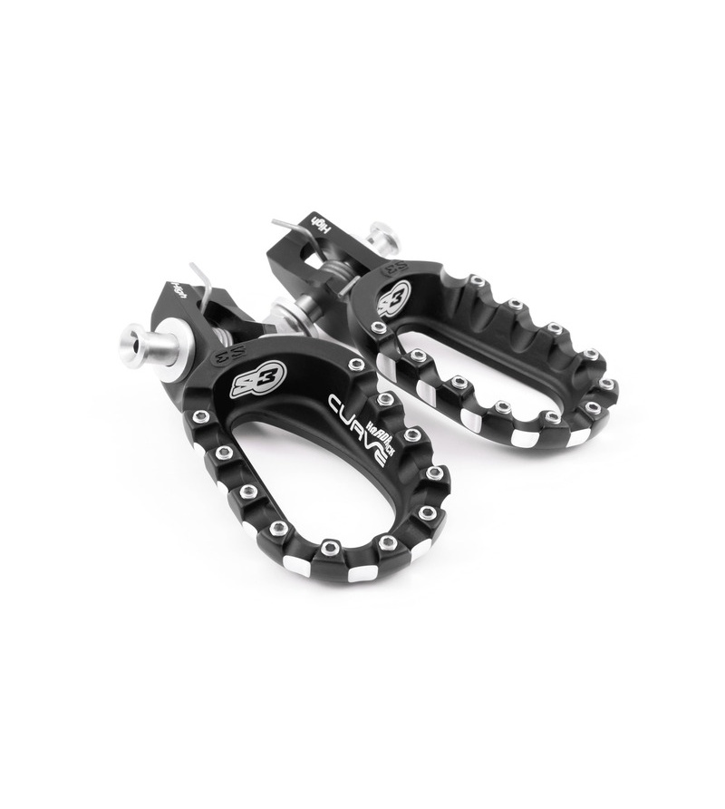 S3 Curve Hard Rock lower Footpegs for KTM, Husqvarna, and Gasgas bikes! Enhance your riding control and comfort with S3 footpegs lowered by 5.0mm. Designed for riders seeking improved ergonomics, these footpegs lower your riding position slightly, offering better stability, balance, and a more natural stance on your bike. Built from high-quality, durable materials, the S3 Low Footpegs provide a secure platform with aggressive teeth for maximum grip, even in mud, rain, or rough terrain. The slightly lowered position reduces fatigue during long rides and improves confidence in technical sections. Easy to install and precision-fit, these footpegs are a perfect upgrade for adventure, enduro, or off-road bikes. Key Features: 5.0mm lower than OEM for improved ergonomics Wide platform for stability and comfort Aggressive tooth design for superior grip Reduces rider fatigue and enhances control Durable, lightweight construction Easy installation and precise fit Ride with enhanced control and comfort with S3 Low Footpegs.'
