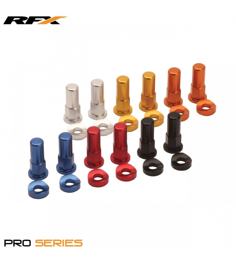 RFX Pro Rim Lock Nuts and Washers prevent dirt clogging the threads on your rim locks easing removal. The curved washers prevent the rim locks from becoming loose by fitting the shape of the rim better.